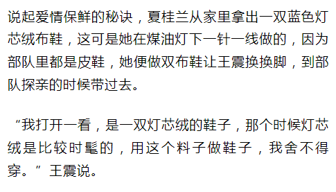 如今,夏桂兰马上就80岁了,王震也是“奔九”的年纪,“我们的爱情应该比年轻时还要好,年轻时候忙忙碌碌,现在家享受晚年幸福生活,珍惜幸福。”