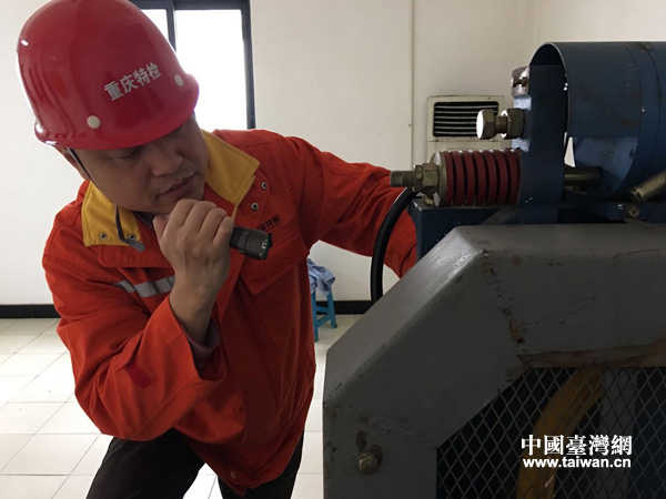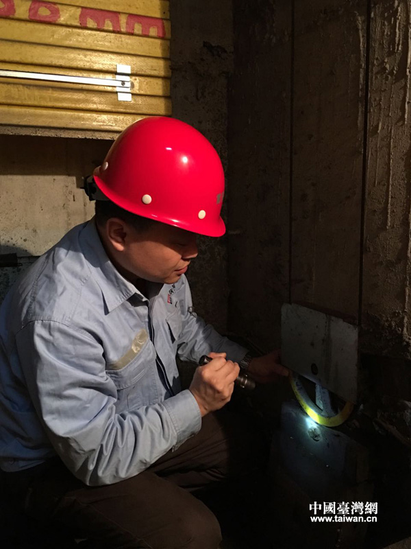 张东平在进行电梯故障检测与维修。(重庆市特种设备检测研究院供图中国台湾网发)