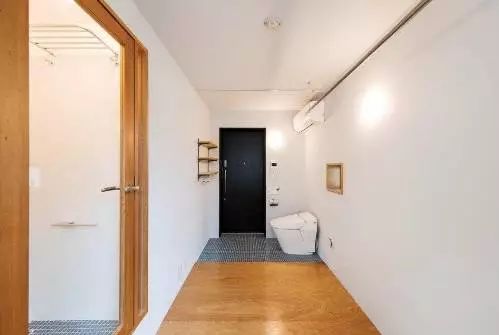 这个房子的好处呢,就是当你把卫生间门打开,房门就可以不用关了。