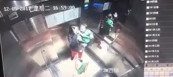 从网上广泛流传的视频可以看出,事件的开始,是在一居民楼的电梯门口。画面显示,孩子由一疑似其母亲的女子交由另一中年妇女,然而就在电梯关闭后不久,画风突变。