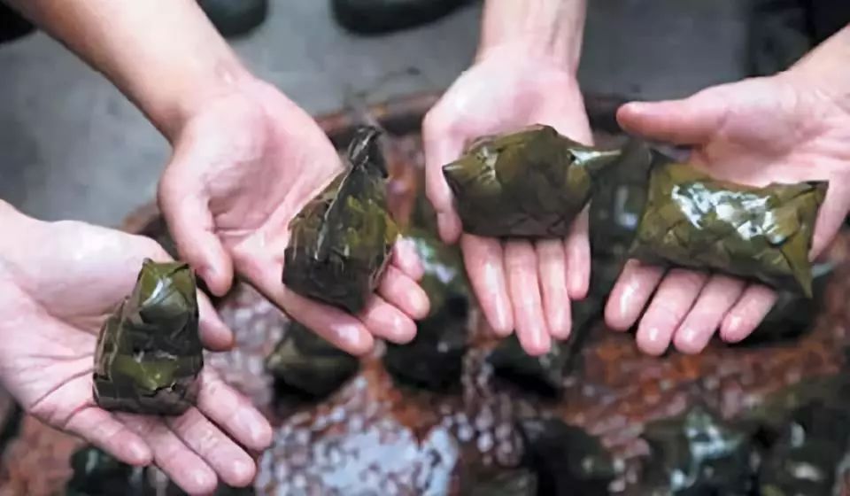 传统的林旁粽,形状至少有八种:菜篮、鱼篓、虾迳、枕头、神靴、凉鞋、笔架、狗头。据说想要学会包这种粽子,得花上半年时间。
