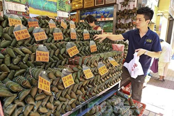 端午节,香港街头摆上了各式各样的粽子。