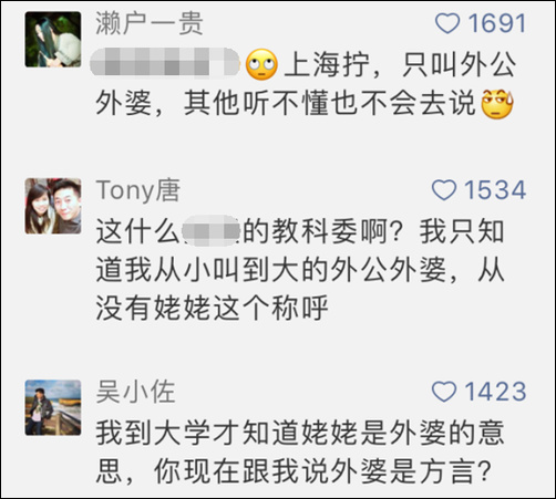 而且,在许多网友看来,“外婆”和“姥姥”都是方言,真正的书面语应该是“外祖母”。