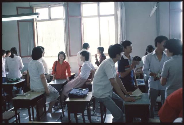 八十年代早期,北京的中学生没有校服,只有上体育课的时候才穿上相对整齐的运动服。教室里,是各自花花绿绿的私服。