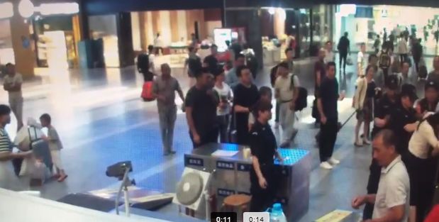 马某铁了心要硬闯安检口,还对着工作人员大声吼叫。